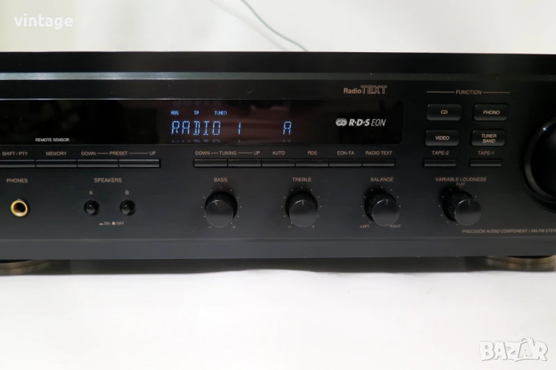 Транзисторен стерео ресийвър, отличен технически, много добър външен вид. Цифров тунер с RDS и памет, корекции: bass, treble, variable loudness. Дистанционно управление не е налично. Приложените снимки и видео са реални!