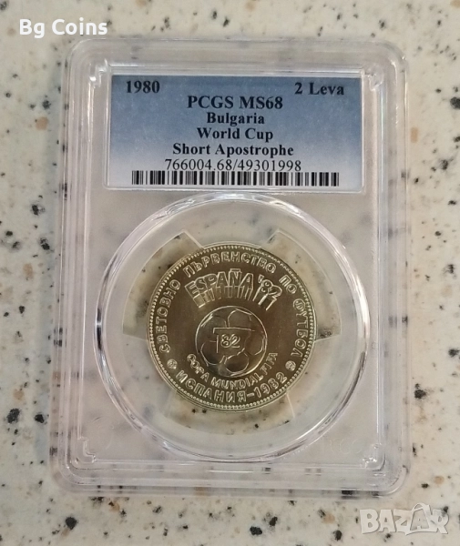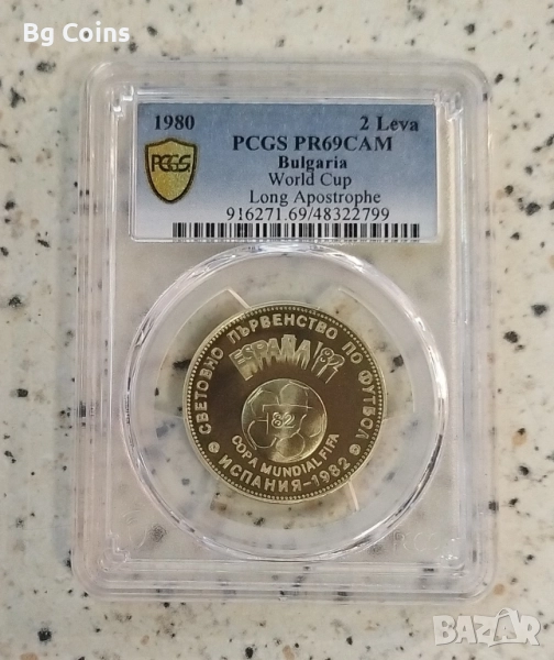 2 лева 1980 Дълъг апостроф PR 69 - 350 евро