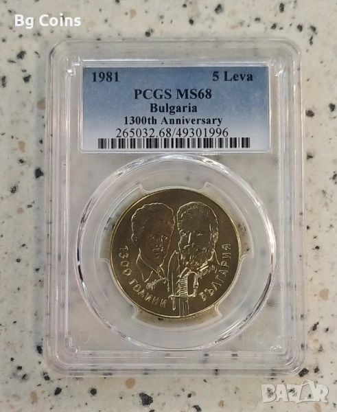 5 лева 1981 Ботев и Петьофи MS 69 - 200 евро