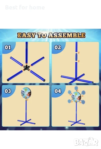ЛЕСНО ЗА СГЛОБЯВАНЕ БЕЗОПАСНО: Няма нужда да се притеснявате за сглобяването. Нашият комплект се сглобява лесно, така че забавлението започва веднага. Изработен от висококачествени материали, той е издръжлив за игра на закрито и на открито. Меките дунапренени стрелички са безопасни, което осигурява спокойствие на родителите, докато децата се забавляват страхотно.