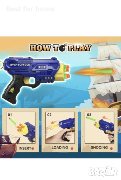 ПИРАТСКА ЕСТЕТИКА, ЗАПАЛВА СТРАСТТА КЪМ ПРИКЛЮЧЕНИЯ: Ахой, малки пирати! Нашият комплект за стрелба с пиратска тематика е портал към свят на приключения. Мишената е украсена със сложно проектирани пиратски кораби, блестящи сандъци със съкровища и емблематични черепи с кръстосани кости. Оборудван с 2 бластера, всеки зареден с 40 дунапренени стрелички, детското въображение. Те могат да влязат в обувките на смели пирати, да участват в битки и да превърнат всяко време за игра в незабравимо приключение.