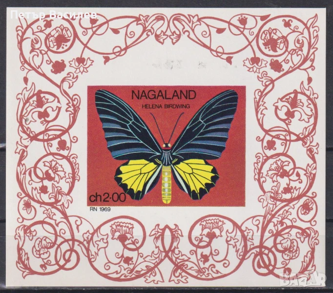 Чист блок Фауна Пеперуда 1969 от Нагаланд Индия.