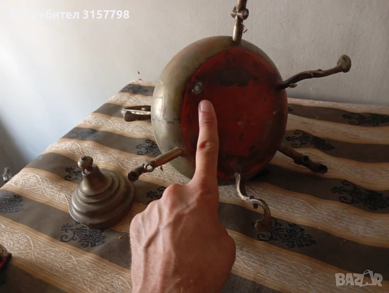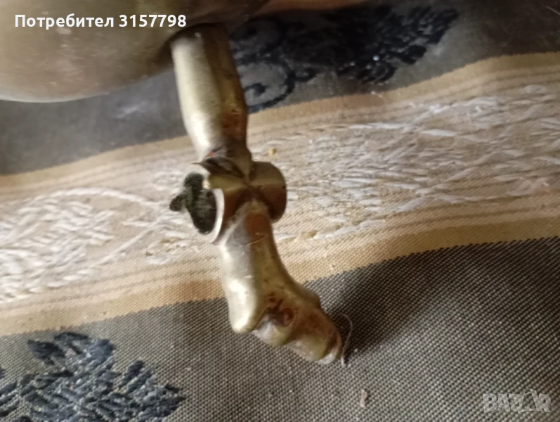 Месинг,единият крак липсва и не стои изправен.Окомплектованост и състояние видни на снимките