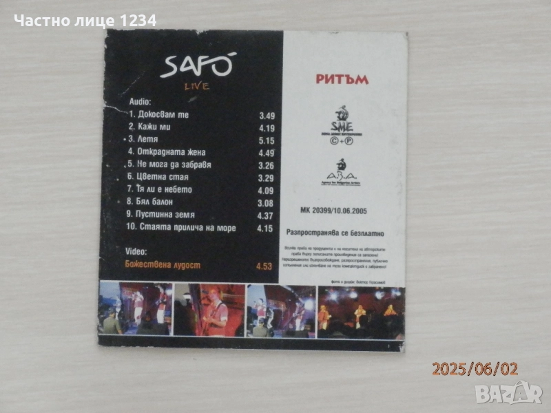 Група Сафо - Safo - Live - 2005, 1 евро. Матричен диск в добро състояние.