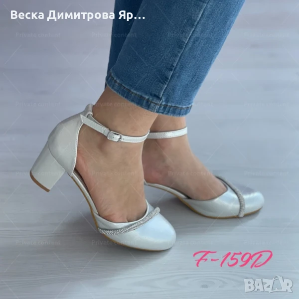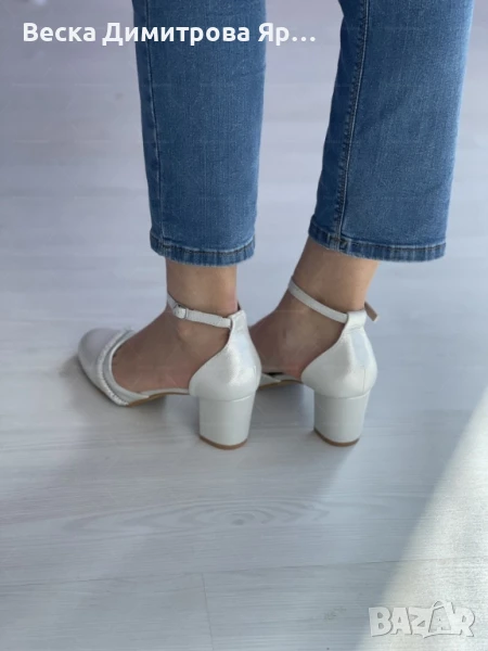 Елегантност с блясък: Изчистени дамски затворени сандали с ток и бляскав акцент → Обява 51193935
