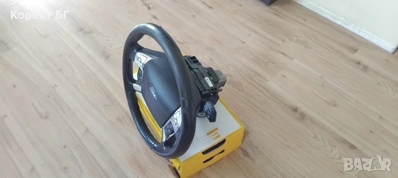 Мултифункционален волан с аербег airbag и лентов кабел + лост за мигачи/чистачки за Ford Mondeo Форд Мондео – комплект. Налични са 2 броя. Комплектът включва: Мултифункционален волан с бутони за управление и здрав аербег airbag. Лентов кабел . Лост за мигачи и чистачки / превключвател . Всички части са оригинални. Напълно изправни. Гаранция за демонтаж от сервиз! Намира се в Габрово. Желателно е лично предаване. Възможна е доставка с куриер с преглед и тест. Без коментар на цената. 43 години опит! Промоционалната цена е активна до края на седмицата!