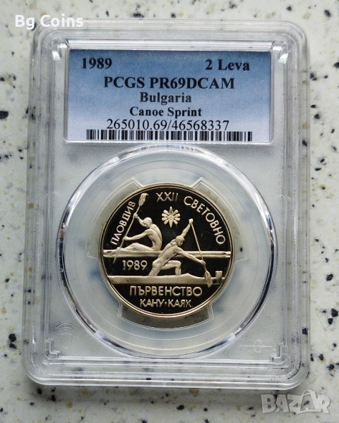 2 лева 1989 Кану каяк- PR 69 - 60 евро
