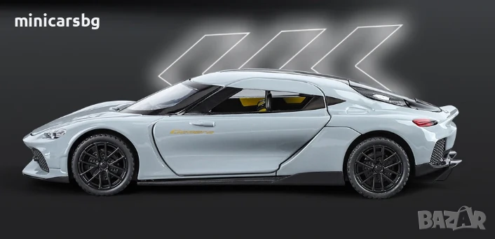 koenigsegg gemera, diecast количка, модел спортна кола, хиперкола 1:32, играчка gemera, сива количка, светлини и звук, подарък момче, модел автомобил, карбон дизайн