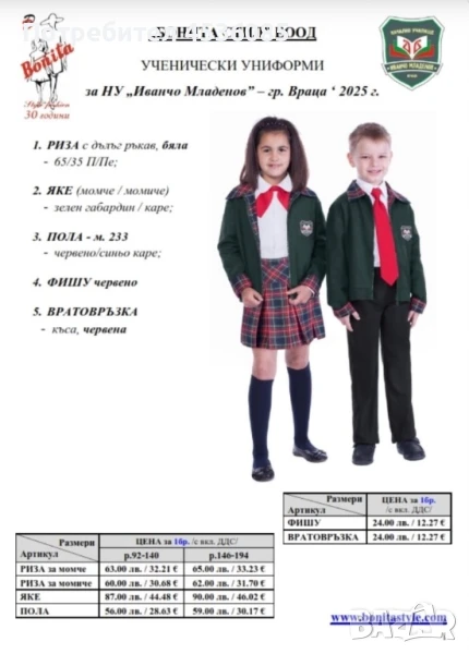 Ученическа униформа за момиче на НУ “Иванчо Младенов” размер 146-152