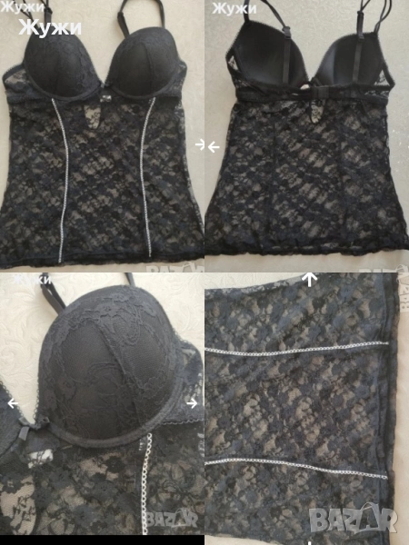 Луксозен дамски корсаж, размер S,,без забележки, само пробвано и прано,чашка,,В,, цена 6,90 лв. ДАМСКО боди с къс ръкав ,без забележки, размер М, цена 3лв.СЛЕДВА черно боди с къдрици на раменете, без забележки,цена 4,50лв. СЛЕДВА боди, размер Л S,без забележки, цена 3, 90 лв.НОВИ бели корсажи, размер е, цена 4,50 лв.ПОСЛЕДНОТО е размер М, цена 3, 50 лв . БЕЖОВО бюстие размер М цена 3 лв. БЯЛО бюстие без забележки цена 3,90 лв.