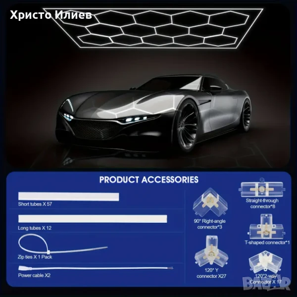 LED лампа за гараж, шестоъгълна мрежа, осветителни тела за магазини, свързваща се, щепселна, за гараж, работилница, мазе, фитнес зала, склад,