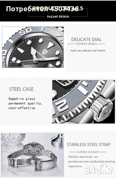 PAGANI DESIGN EXPLORER GMT автоматичен часовник с механизъм SEIKO NH35, стъкло сапфир, водоустойчив
