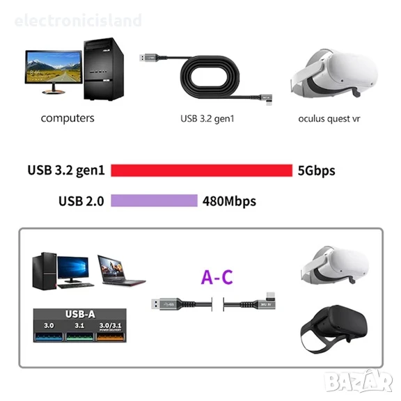 1 * Jeswo Link кабел за Oculus Quest 3/2/1