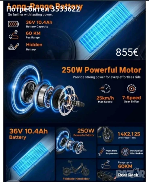 Електрически велосипед. → Обява 51197623