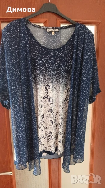 Дамска блуза тъмно синя с Бяла шарка 10€ бр. Размер Л