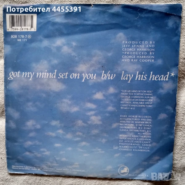 Грамофона плоча сингъл George Harrison "Got my mind set on you"1987 → Обява 51199360