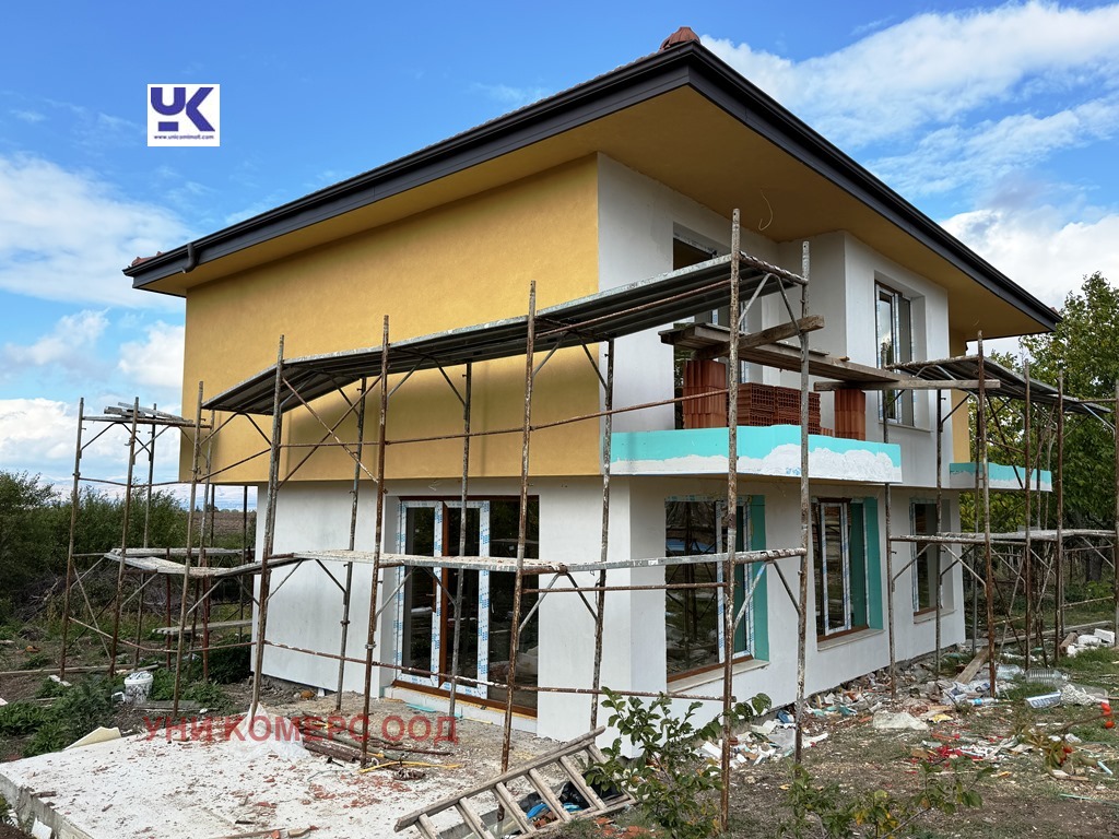 ОФЕРТА 26544. Новострояща се двуетажна масивна къща в с. Хераково, местност Бобен. Целогодишен достъп по асфалтова улица. Транспорт в близост. Между къщи. Обща площ 179кв.м., двор 580кв.м. Разпределение: ет.1 - хол, кухня с трапезария, сан. възел, антре. ет.2 - 3 спални, едната със собствена, баня, отделно още един.сан. възел, дрешник, мокро помещение. Централен водопровод. Предаване на замазка и шпакловка. Очаквано завършване месец октомври 2025г.