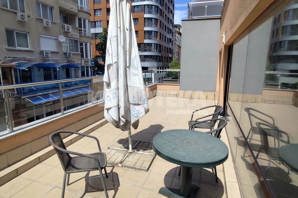 Самостоятелен вход, комуникативна локация, обзаведен и готов за ползване офис, две тераси, сграда с контролиран достъп.