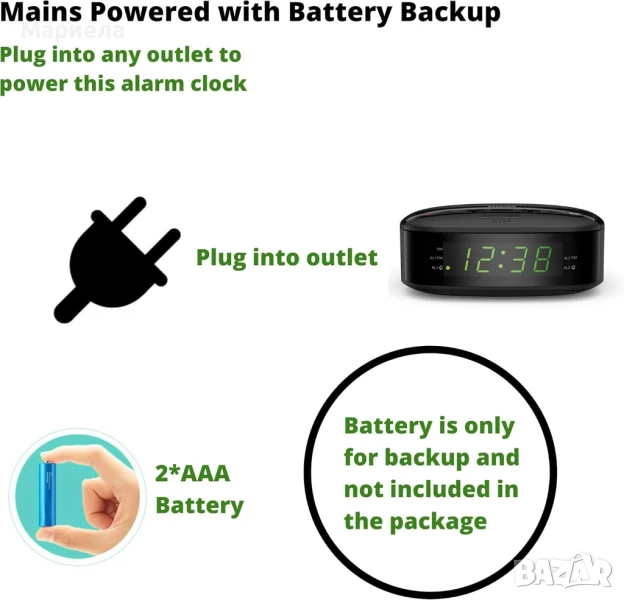 Повторение на алармата за допълнително дрямка - За да се противодейства на преспиването, радиото с часовник Philips има функция за дрямка. Ако алармата звънне и искате да продължите да спите малко по-дълго, просто натиснете бутона за повторение на алармата веднъж и заспите отново. Девет минути по-късно алармата ще звънне отново. Можете да продължите да натискате бутона за повторение на алармата на всеки девет минути, докато не изключите напълно алармите .