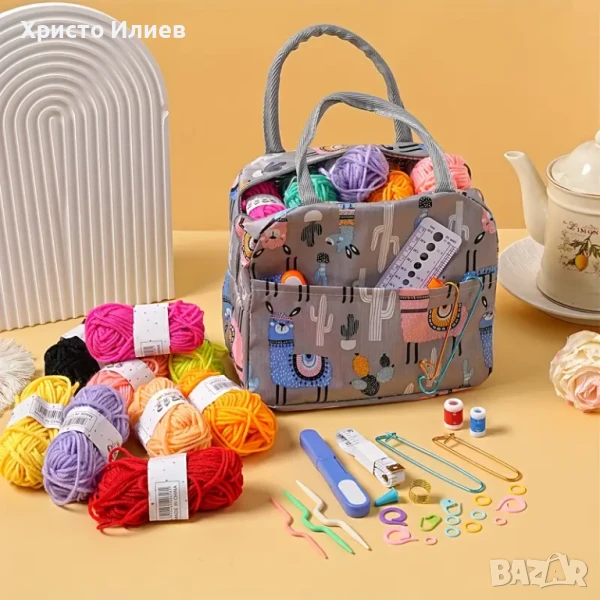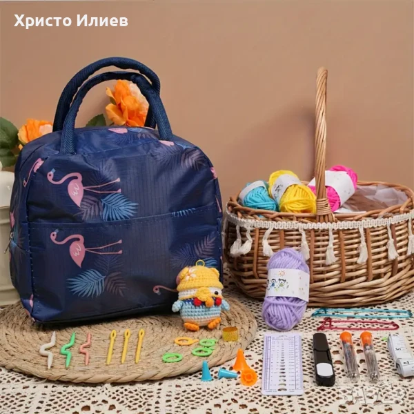 Комплект за плетене на една кука за начинаещи с чанта 75 части