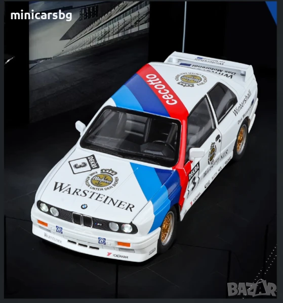bmw m3 e30, bmw количка,t diecast модел, състезателна кола 1:24, warsteiner bmw, спортна количка, умалено bmw, класическо bmw, ретро автомобил, подарък за фен на коли