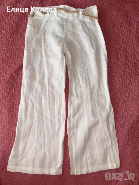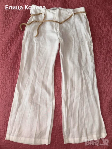 Бял ленен панталон с колан, размер S → Обява 51201916