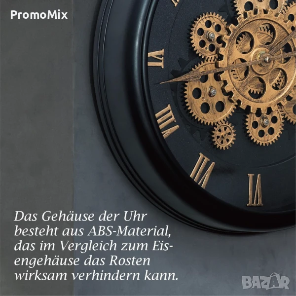 стенен часовник изработен с въртящи се зъбни колела и диаметър на циферблата 33 сантиметра.