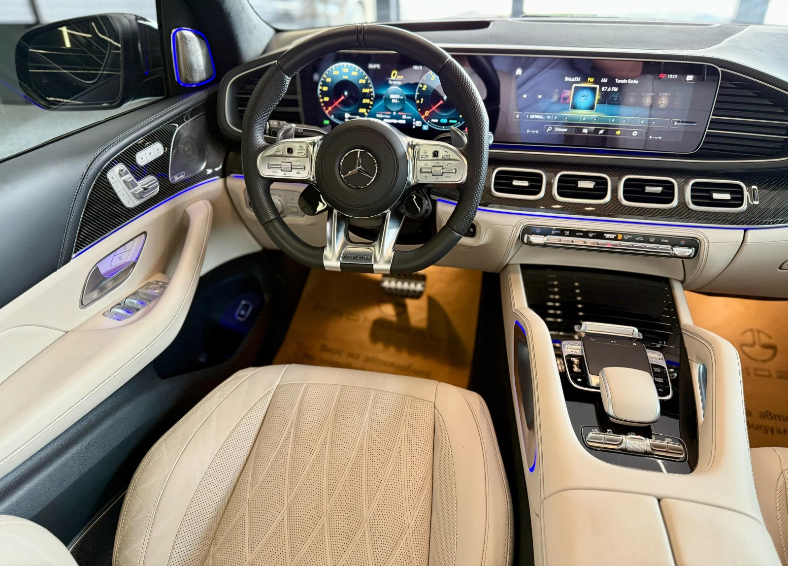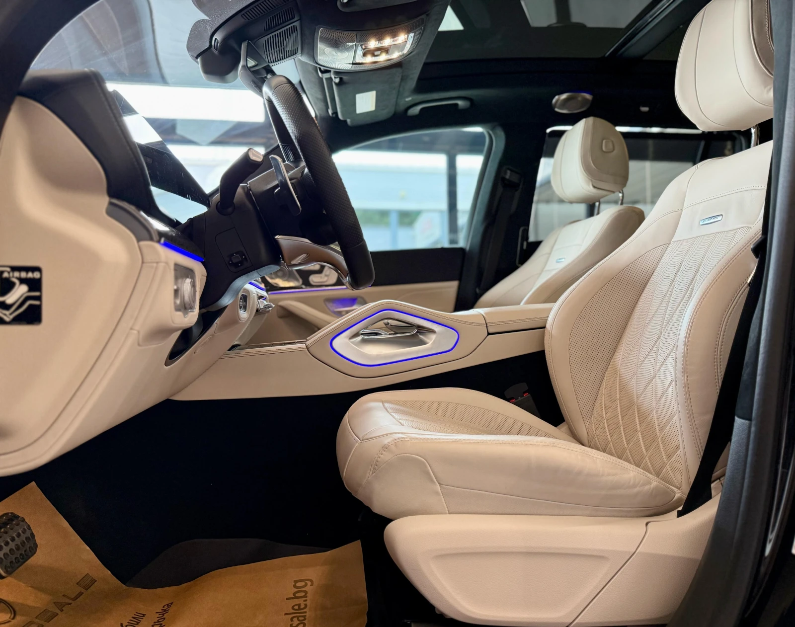 🚗 Основни характеристики и производителност Двигател: 4. 0‑ литров V8 Biturbo с 48V mild‑ hybrid система (EQ Boost), агрегираща до около 612 к. с. (450 kW) и 850 Nm въртящ момент Ускорение 0 100 км/ч: около 4. 2 сек (отмерено 4. 1 сек при тестове, 0 60 mph) Максимална скорост: електронно ограничена на 250 км/ч, или до 280 км/ч с опционалния AMG Driver s Package 🔧 Трансмисия и задвижване Трансмисия: AMG SPEEDSHIFT TCT 9‑ степенна автоматична с paddle shift Задвижване: пълен привод AMG Performance 4MATIC+, с електромеханична муфа, способна да изпраща до 100% мощност към задните колела при нужда ⛽ Расход и емисии Среден разход: около 13. 3 13. 5 л/100 км (≈ 17 US mpg) CO₂ емисии: приблизително 300 306 г/км, стандарт Euro 6e 📐 Размери и тегла Дължина: около 5207 мм (≈ 205. 0 инча) Ширина: около 1956 мм (без огледала ~ 79. 9 in) Височина: около 1823 мм Междуосие: приблизително 3135 мм Тегло: около 2630 кг (≈ 5, 798 lbs curb weight) 📦 Вътрешен простор и товароносимост Седалки: стандартно 7‑ местен (2/3/2 конфигурация) Обем багажник: около 12. 5 cu. ft (≈ 355 л) до третия ред, 42. 7 cu. ft до втория, 84. 8 cu. ft до първия ред Теглич: максимална носимоспособност до около 3, 500 кг (брек equipado), еквивалент около 7, 700 lb 🎵 Екипировка и екстри Интериор и комфорт Инфотейнмънт MBUX с дигитална приборна секция и голям тъчскрийн дисплей Burmester Surround Sound озвучителна система Навигация с разширена реалност, Apple CarPlay, Android Auto, Wi‑ Fi, дистанционно стартиране на двигателя, памет за позиции на седалка/стъкла/ Допълнителни пакети: Acoustic Comfort, Warmth & Comfort, Executive Rear Seat PLUS, Energizing Package с ароматизатор и шумоизолация Безопасност и асистенции Асистиращо управление: Blind‑ spot assist, Lane keep assist, Active brake assist, Актуална 360 камера с автоматичен паркинг, eCall Стандартни въздушни възглавници във всички редове и система за контрол на налягането в гумите Обходен комфорт Панорамен покрив за първи и втори ред, автоматични чистачки с датчик за дъжд и подгряване на струйниците ✅ Автомобилите, предлагани от Promosale, са проверени, с доказан произход и напълно обслужени. Предлагаме пълно съдействие при регистрация в КАТ. Работим с всички застрахователни компании на преференциални цени. Внос от Германия по избор на клиента - автомобили и камиони, до 5 работни дни. Предлагаме собствен лизинг без доказване на доходи и работим със всички лизингови компании като: Алианц; Uplease; Unicredit; ОТП Лизинг; ОББ Интерлийз и други. Телефони за връзка: 0892020208 0895020203 0894908080