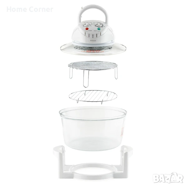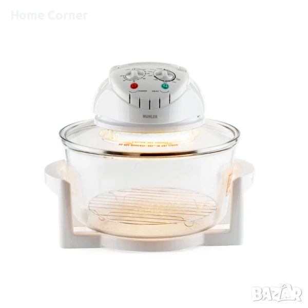 Гответе по-бързо, по-здравословно и с по-малко мазнина с комбинираната халогенна фурна и еър фрайър Muhler 2в1! Подходяща за печене, пържене, размразяване, гриловане, задушаване и затопляне – всичко в един уред.