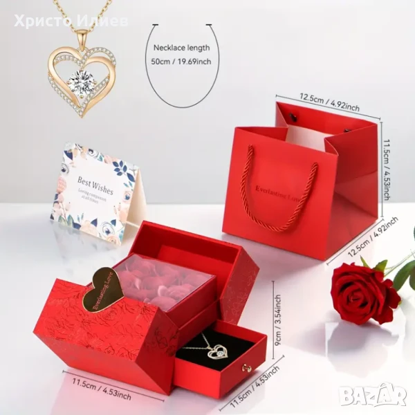 - Романтичен подарък за нея. Под уникалната подаръчна кутия с роза и колие има чекмедже. Можете да поставите и други изненадващи подаръци, за да създадете романтични изненади, като например да поставите бижу или венчална халка в центъра на розата и да ѝ предложите брак. Подарете ѝ супер незабравима изненада! Подаръкът от консервирана роза се надява да ви помогне да създадете изненади и да съберете перфектната любов.