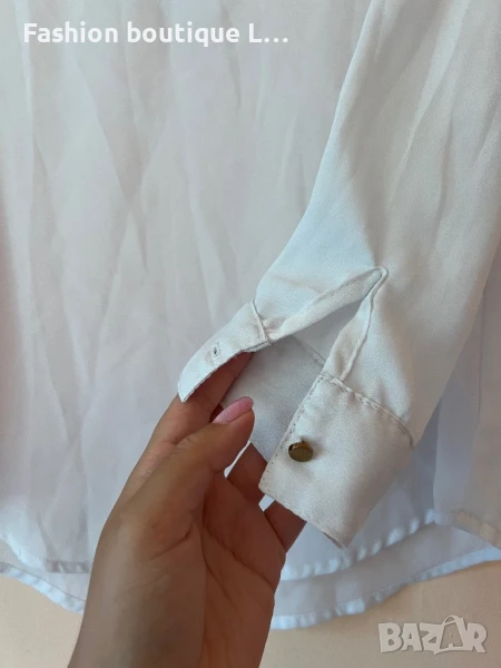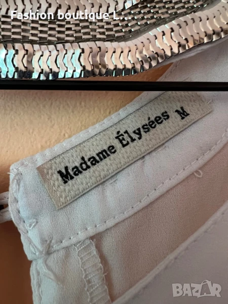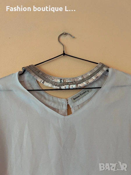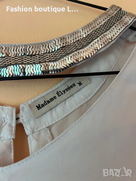 Бяла ефирна блуза със сребърни детайли около целия врат М размер 🤍 → Обява 51203397