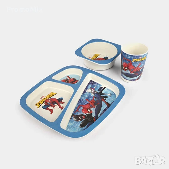 Детски комплект за хранене Bamboo Fibre kids set Spider Man 5 части прибори за хранене Спайдър Мен