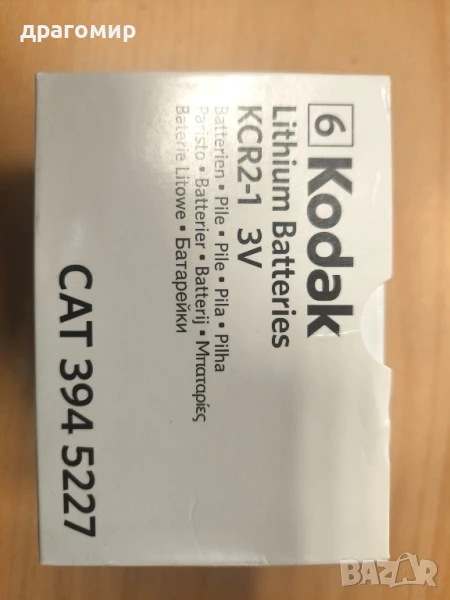 продавам нови батерии с изтекъл срок на годност, Kodak CR2 BATTERY 3v,един брой 3 лв,,2 броя за 5 лв,10 броя за 20 лв, имам още много други фотоапарати, камери, обективи, чанти, светкавици, батерии, зарядни устройства, касети, филтри, ремъци, ленти, при закупуване на повече неща отстъпка