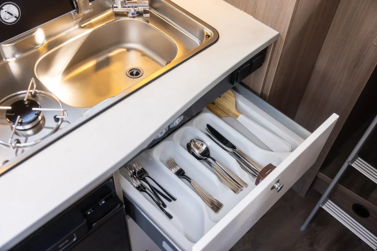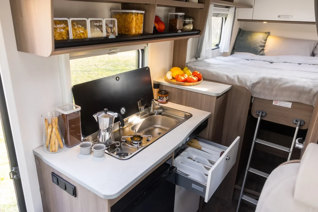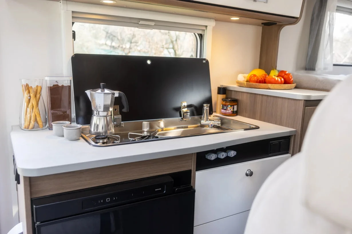 Camperisimo, официален вносител на марките Dethleffs, Giottiline и Sunlight. Внос на кемпери и каравани. Внос на най - добри цени на кемпери от марките Hymer, Carthago, Mobilvetta, Roller Team, Challenger, PLA, Notin. _______________________ > Базов автомобил: Citroë n Jumper > Двигател: DIESEL 2. 2 BlueHDI > Мощност: 103 kW (140 PS) > Размер на гумите: 225/75 R 16 CP > Дължина 6, 64 м > Ширина 2, 14 м > Височина 2, 74 м > Вътрешна височина: 195 см > Брой пътнически места (включително водача): 4 > Брой легла: 2 (194 х 140/130 см) > Допълнителни легла (по желание): 1 (195 x 80 cm) > Размер на леглото в средата: 192 х 65/45 см > Обща маса (кг): 3500 > Технически допустим капацитет на теглене (кг): 2000 > Спални места: 2 с опиция за допълнително трето легло > Обем на хладилника (л): 78 (11л. Фризерна част) > Отопление:
