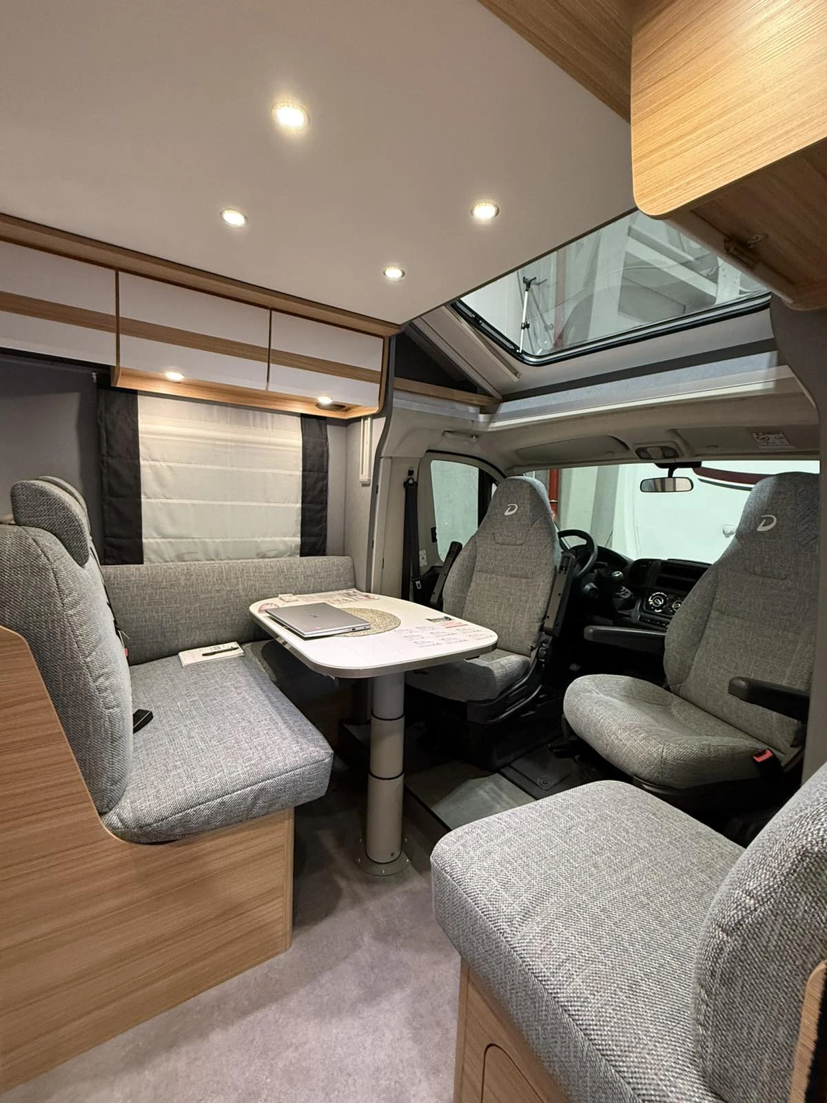 Camperisimo, официален вносител за на марките Dethleffs, Giottiline и Sunlight. Внос на кемпери и каравани. Над двеста кемпера налични за доставка до три дни! Внос на най добри цени на кемпери от марките Hymer, Carthago, Mobilvetta, Roller Team, Challenger, PLA, Notin. Кемпер Dethleffs Just T 7052 EB на базата на Fiat, 2. 2 Multijet 140 к. с. Euro 6d- 3 500 кг Ръчна скоростна кутия. Тапицерия: Chaleur Декор - Дъб Вирджиния Кухня в средата, отделни баня и тоалетна Пакет шаси на Fiat (LED дневни светлини, електрически регулируеми и отопляеми външни огледала, автоматичен климатик, круиз контрол, въздушна възглавница за пътници, подготовка за радиосистема със звуков пакет, кожен волан и топка на скоростната кутия с кожен ръкав, арматурно табло с хромирани пръстени) Семеен пакет (входна врата с комарник, осветление за тента 12 V, панорамен люк на покрива 70x50 см в дневната, затъмняващи щори в кабината на водача, амбиентно осветление, пакет с LED светлина, врата на тялото с прозорец и централно заключване , регулиране на височината и наклона за седалка на водача и пътника отпред. Дизайнерски пакет (дървен декор от дъб Вирджиния, бяла ламинатна маса и кухня, входна зона със задно осветяване (магнолия с висок гланц), хромирана дръжка във входното пространство, гардероб с покритие от плат, включително хромирани куки за палта (в зависимост, контакти и ключове в двуцветен, L-образен кът за сядане, душ конзола в черно и аксесоари за баня ( стойка за четка за зъби, съд за сапун, поставка за тоалетна хартия), ново проектирана кухненска част (кухненска стена със задно осветяване, лява кухненска стена в уелски бял цвят, дръжка и решетка за кърпи в хром)) Алуминиеви джанти 16 инча Електрическо падащо легло 206x118cm Подготовка за соларна система Подготовка за камера за заден ход Подготовка за система SAT Спалня с две мултифункционални легла Стойка за телевизор Допълнителен прозорец в банята