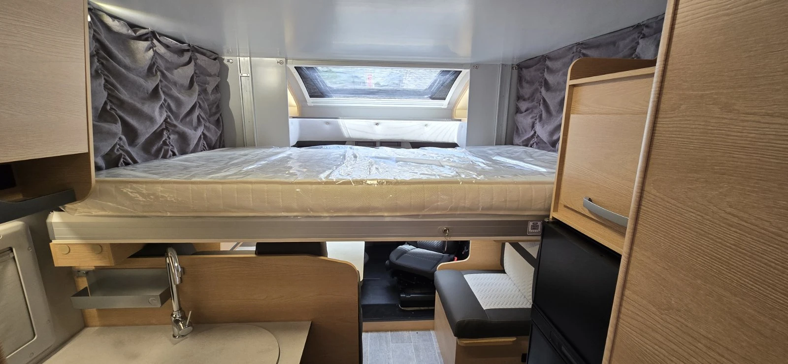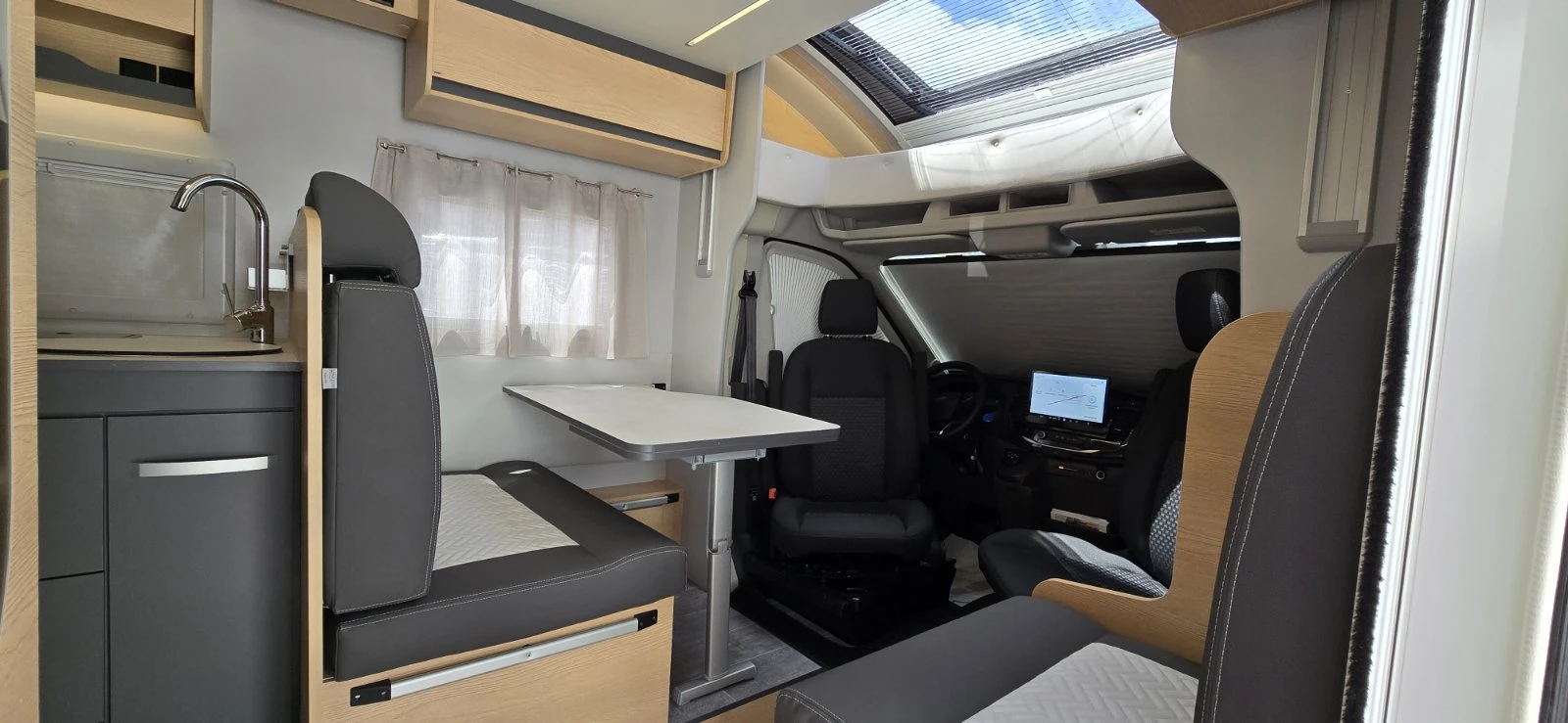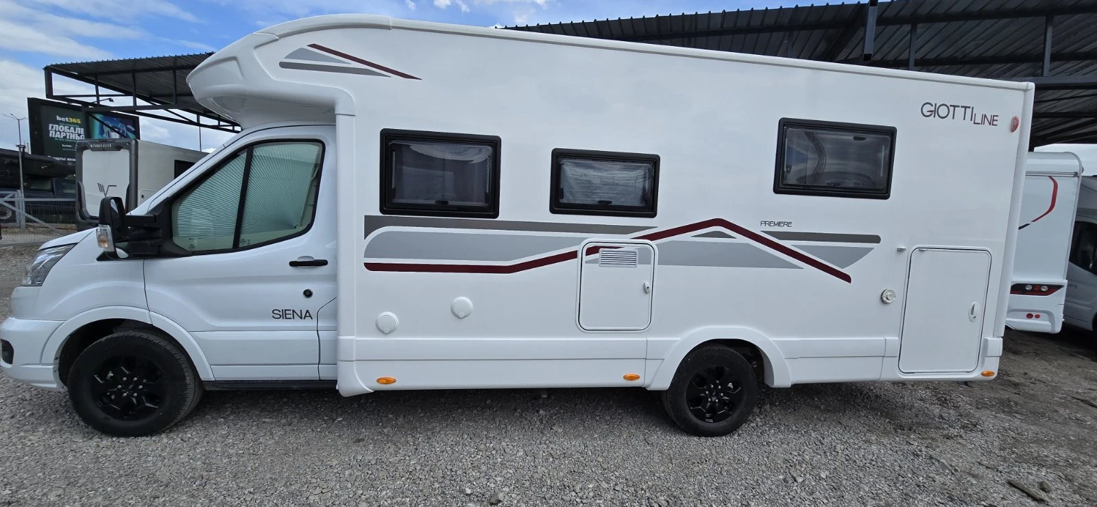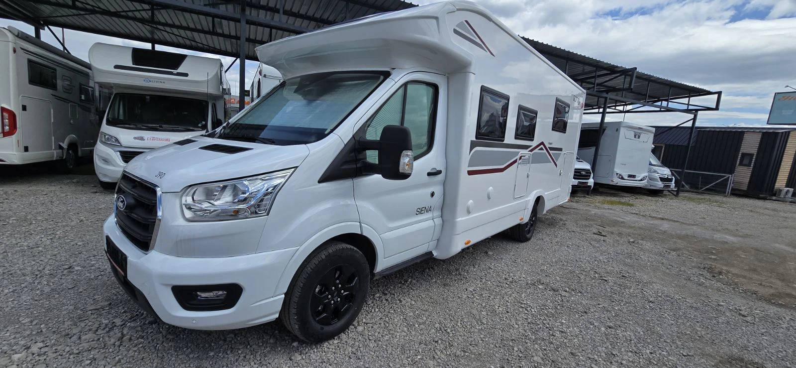 Camperisimo, официален вносител на марките Dethleffs, Giottiline и Sunlight. Внос на кемпери и каравани. Внос на най-добри цени на кемпери от марките Hymer, Mobilvetta, Roller Team, Challenger, PLA, Notin. GiottiLine Siena 390: > Моделна година 2025 > Шаси Ford Transit > Двигател Diesel 2. 0L, 165 к. с. /(Евро 6. 2 D FINAL) > Максимално натоварване 3500кг > Размери 741/233/294см > Вътрешна височина 218см > Размери на гаража 218/120/109см > Места за пътуване 5 > Места за спане 6 > Места за хранене 5 > Климатик към двигателя, круиз контрол, дневни светлини > Въздушни възглавници за водача и пътника > Електрически странични огледала > ESP > Hill holder + Hill descret > Подсилени амортесьори на преден мост > Алуминиеви джанти 16" > Камера за заден ход > DAB радио подготовка > Панел TRUMA CP PLUS iNet Pack Plus Siena PSA MY25 - Кожени волан и копче за скорости - Фарове за мъгла - Автоматично превключване на фаровете - Сензор за дъжд - Табло с алуминиев декор - Хромиран отвор за въздух PLA Pack Privilege Low Profile MY25 - Корпусна врата с две брави - Панорамни прозорци - Система за централно заключване - LED стопове - Прозорец 1000х600 - Подложка за привилегии - Задна камера с монитор - LED стопове > Въртящи се предни седалки > Sky roof над кабината > Вградени ново поколение термо и слънцезащитни плисирани щори за затъмнение на шофьорската кабина > 100% LED осветление > Отопление на резервоар за сива вода > Отопление на гаража > Електрическо падащо легло над дневен сет 200x125 см > Преобразуване на дневен сет в място за спане > Две отделни помещения - баня и тоалетна > Резервоар за чиста вода 120 литра > Резервоар за отпадни води 100 литра > Модерен кухненски бокс хладилник 142 литра, мивка и газови котлони. > Място за две газови бутилки > Голям гараж с две големи врати за достъп и отопление. > Щори и комарници на всички прозорци Ние ще Ви съдействаме за най - добри условия за лизинг. При нас ще намерите специализиран сервиз за кемпери и каравани, магазин за аксесоари и резервни части, както и охраняем паркинг за вашият кемпер или каравана.