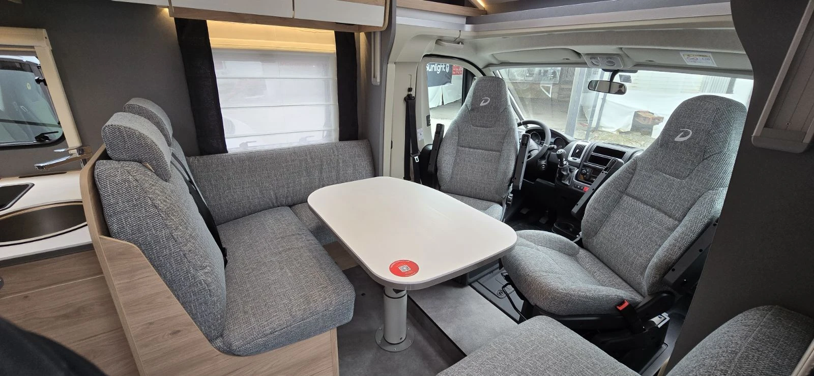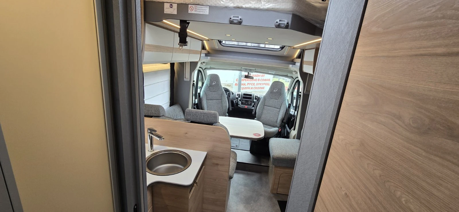 Camperisimo, официален вносител за на марките Dethleffs, Giottiline и Sunlight. Внос на кемпери и каравани. Над двеста кемпера налични за доставка до три дни! Внос на най - добри цени на кемпери от марките Hymer, Carthago, Mobilvetta, Roller Team, Challenger, PLA, Notin, Chausson. Кемпер Dethleffs Just Camp 7052 DBM на базата на Opel, 2. 2 140 к. с. Euro 6d- Максимално натоварване 3 500 кг Ръчна скоростна кутия. Тапицерия: Chaleur Декор - Дъб Вирджиния L разположение на дневен сет Кухня в средата, отделни баня и тоалетна Пакет шаси на Opel (LED дневни светлини, електрически регулируеми и отопляеми външни огледала, автоматичен климатик, круиз контрол, въздушна възглавница за пътници, подготовка за радиосистема със звуков пакет, кожен волан и топка на скоростната кутия с кожен ръкав, арматурно табло с хромирани пръстени) Семеен пакет (входна врата с комарник, осветление за тента 12 V, панорамен люк на покрива 70x50 см в дневната, затъмняващи щори в кабината на водача, амбиентно осветление, пакет с LED светлина, врата на тялото с прозорец и централно заключване , регулиране на височината и наклона за седалка на водача и пътника отпред. Дизайнерски пакет (дървен декор от дъб Вирджиния, бяла ламинатна маса и кухня, входна зона със задно осветяване (магнолия с висок гланц), хромирана дръжка във входното пространство, гардероб с покритие от плат, включително хромирани куки за палта (в зависимост, контакти и ключове в двуцветен, L-образен кът за сядане, душ конзола в черно и аксесоари за баня ( стойка за четка за зъби, съд за сапун, поставка за тоалетна хартия), ново проектирана кухненска част (кухненска стена със задно осветяване, лява кухненска стена в уелски бял цвят, дръжка и решетка за кърпи в хром)) Алуминиеви джанти 16 инча Електрическо падащо легло 206x110cm Подготовка за соларна система Подготовка за камера за заден ход Подготовка за система SAT Кралска спалня 190x150cm регулируема по височина Допълнителен прозорец в банята Наличен Моля, обадете се за среща с оглед и персонална оферта на 0882000020. www. camperisimo. com