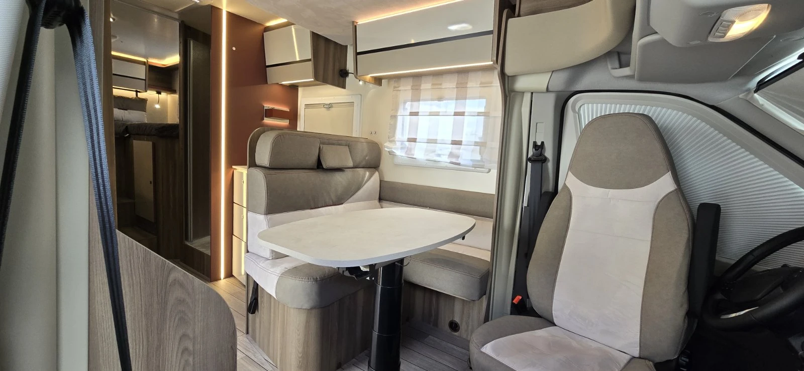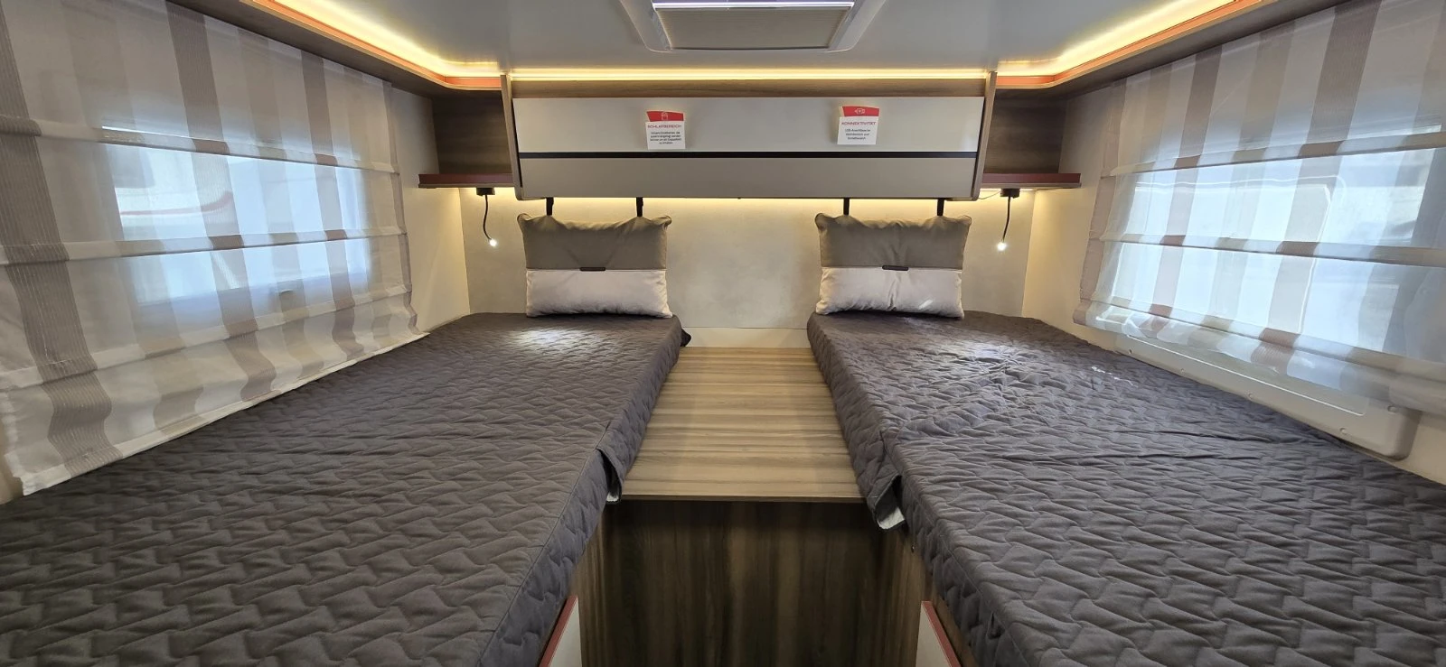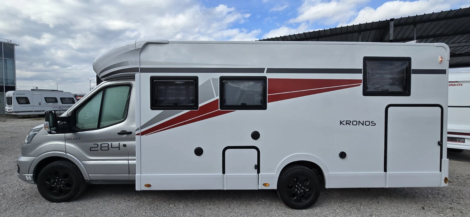 Camperisimo, официален вносител на марките Dethleffs, Giottiline и Sunlight. Внос на кемпери и каравани. Внос на най добри цени на кемпери от марките Hymer, Mobilvetta, Roller Team, Challenger, PLA, Notin. Над двеста кемпера налични за доставка до три дни. НОВО Roller Team Kronos 284TL MY2026 Шаси Ford Transit, Двигател 2. 0TDCI 165к. с. дизел Euro6temp -8-степенна автоматична скоростна кутия -Боядисана кабина на водача в Moondust Silver -16" алуминиеви джанти - Дължина 7. 45м - Ширина 2. 35м - Височина 2. 95м - Брой места за пътуване - 5 - Брой места за хранене 5 - Брой места за спане - 5 - Шаси 3500 - 16-инчови стоманени джанти - ABS/ESP, Start & Stop - Въздушни възглавници за водача и пътника - Круиз контрол - Електрически регулируеми външни огледала с размразяване - Комплект за ремонт на гуми Fix & Go - 70-литров резервоар за дизел - Халогенни фарове с дневни светлини - Фарове за мъгла със светлини за завиване - Автоматични фарове - Автоматични чистачки на предното стъкло - Електрическа ръчна спирачка - Система за спешни повиквания Ford - Камера за задно виждане Ford - Асистент за аварийно спиране - Предупреждение за напускане на лентата - Разпознаване на пътни знаци -Предни сензори за паркиране -Сензор за налягане в гумите -Мултимедия с 12" сензорен екран с Apple CarPlay + Android Auto -Полудигитален кокпит с 8" дисплей -5G модем с безжични актуализации -Автоматичен климатик в кабината -Кабина в цвят Frozen White СТАНДАРТНО ОБОРУДВАНЕ - Каросерия Kronos MY26 -Странични стени в цвят " Solid Grey" -Прозорци Seitz frame -Система за екстремна защита (изолация) Технология ExPS Evo -XL врата на каросерията с една точка на заключване -Плисирана мрежа против комарници за вратата на каросерията -Шенилна тапицерия и калъфи за седалки -5. Одобрена седалка -Електрическо падащо легло -Преобразуване на легло в трапезарията -USB портове в зоната за спане -220 V контакт в отделението за съхранение -Абсорбционен хладилник (220 V, 12 V, газ) 145 л с две врати -Заден люк на покрива Mini Heki 400 x 400 -Преобразуване от две единични легла в двойно легло -CP-Plus -Термо щори в кабината на водача KRONOS ПАКЕТ FORD MY26 -165 к. с. лек двигател -Ръчна скоростна кутия -Фарове " High Series" с фарове за завиване -Заключваща се жабка -Вътрешна облицовка " TREND" -Предна броня и странични лайсни в цвета на каросерията -XL врата с две точки на заключване -Прозорци и централно заключване -200 W соларен панел с MPPT контролер за зареждане -Плисирани затъмняващи щори в кабината на водача ПАКЕТ SELECT MY26 -8-степенна автоматична скоростна кутия ПАКЕТ EXTRA ASSISTANCE MY26 -Отопляемо предно стъкло -Адаптивен круиз контрол с функция Stop & Go -Асистент за предотвратяване на сблъсък 2. 2 -Интелигентен круиз контрол -Навигационен център -Електрически сгъваеми външни огледала ПАКЕТ DESIGN FORD MY26 -Боядисана кабина на водача в Moondust Silver -16" алуминиеви джанти OPEN Sky панорамен прозорец на покрива Електрическо подово отопление Централен люк на покрива Truma Combi 6 газова/електрическа Моля, обадете се за среща с консултация и индивидуална оферта на 0882 000020, 0888 677676 на info@camperisimo. com.