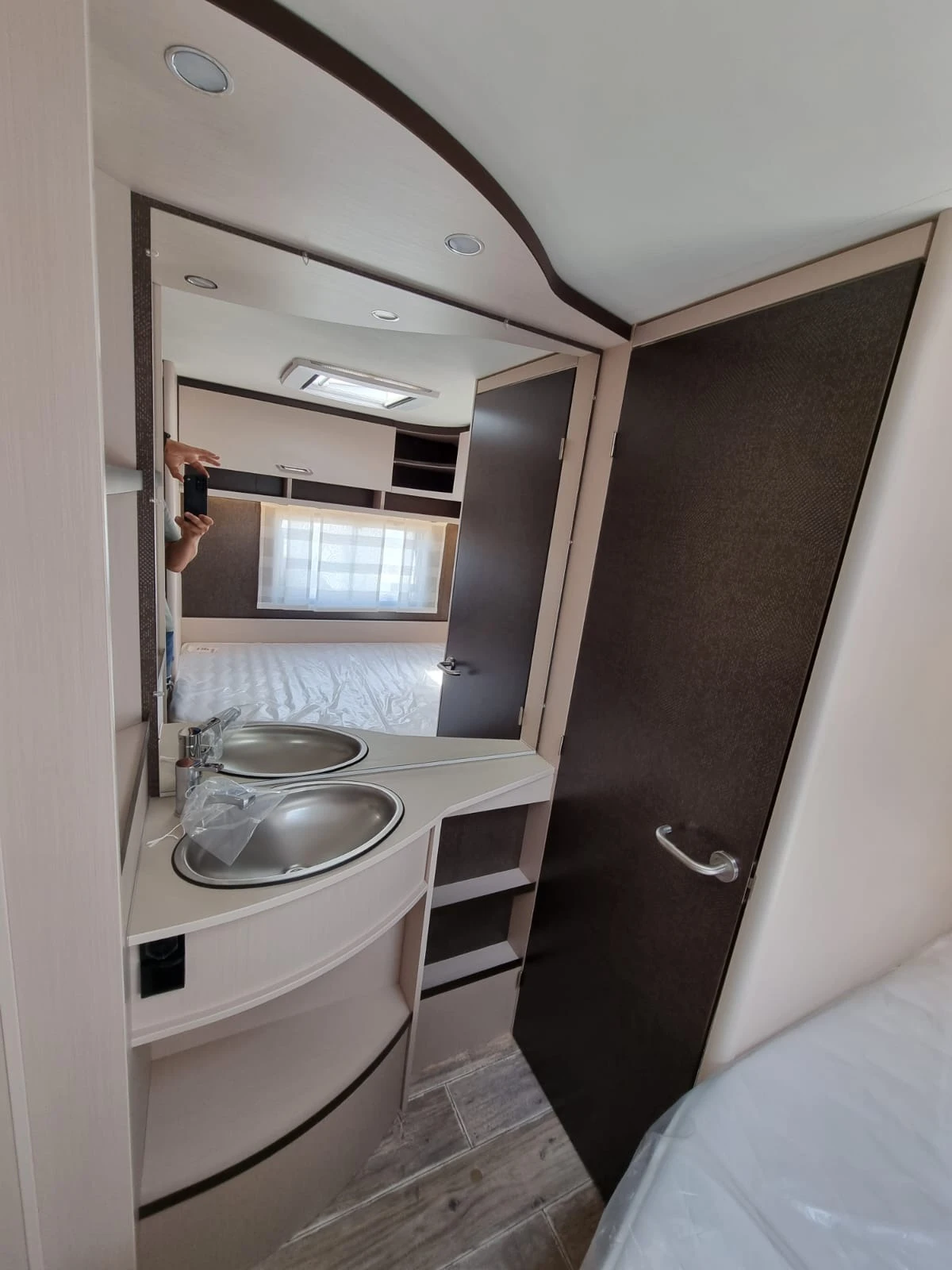 Camperisimo, официален вносител на марките Dethleffs, Giottiline и Sunlight. Внос на кемпери и каравани. Внос на най - добри цени на кемпери от марките Hymer, Carthago, Mobilvetta, Roller Team, Challenger, PLA, Notin. Каравана Dethleffs C' Go 495FR ! ! ! НАЛИЧНА! ! ! Сега с подарък 500 Евро в допълнително оборудване и пет години гаранция! ! ! Обща дължина -725см Ширина - 230см Височина - 261см Вътрешна височна - 198см Обща маса - 1700кг Гуми 195 R 14 C Брой спални места - 4 Френска спалня Кръгла седяща група Баня и тоалетна Кухненски бокс Хладилник - 142л. Отопление Truma S-3004 с автоматично запалване Компактна каравана Dethleffs C' GO 495 FR, с просторна кръгла седяща група в задната част, централен кухненски бокс с голям хладилник и френска спалня отпред до санитарната част и отделна мивка. Тази каравана изглежда модерна и свежа и е идеалната каравана за пътуване с 2-ма души или със семейството. Тъй като просторната седяща група може идеално да се превърне в пълноценно двойно легло.
