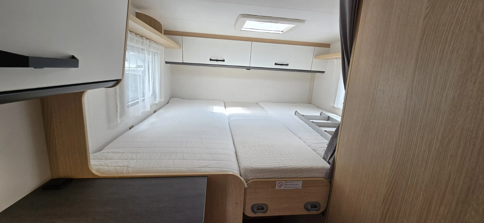 кемпери и каравани. Внос на най добри цени на кемпери от марките Hymer, Carthago, Mobilvetta, Roller Team, Challenger, PLA, Notin. Над двеста кемпера налични за доставка до три дни! Модел: Sunlight V66 Adventure Edition ! ! ! Наличен ! ! ! Sunlight V66 Adventure Edition - Общо допустимо тегло до 3500 кг. - Шаси Citroen 140к. с. - Размери : Дължина 660см, Ширина 212см и височина 293см - Задни легла 200 X 80 / 195 X 80 - Приставка за конверсия в цяла спалня - Прозорци от двете страни на леглата и люк над тях - Ротационна баня от ново поколение и тоалетна - Две гаражни врати за достъп с размери 75 X 80cm - 220V контакти 3бр, USB 4бр, 12V 1бр. - Вградени плисирани щори за затъмнение на кабината Remis - Adventure Черна стойка за велосипеди THULE - Adventure Черна тента THULE - Камера за заден ход - Осветление над входна врата - 4 места за пътуване - 3 места за спане - 125 л. резервоар за чиста вода - 100 л. резервоар за сива вода - Два соларни панела по 175W - Контролер Victron - Тъмни щори и защита от насекоми ново поколение на всички прозорци и люкове - Мрежа за защита от насекоми на входна врата - Електрическа степенка - Кожен волан с мултифункция - Кожен скоростен лост - 140 конски сили, Общо тегло до 3500 кг. - 16" Алуминиеви джанти в черен цвят - Специално шаси за къмпинг автомобил - Заден мост с широка линия - ESP (програма за стабилност) - ASR (регулация против приплъзване) - Помощ за потегляне по наклон - Електрически прозорци - Централно заключване включително - Система за следене на налягането в гумите TPMS - Климатик в кабината - Въздушна възглавница за водача и пътника - Темпомат/ограничител на скоростта - Електрически отопляеми външни огледала с автоматично размразяване - Интериор - Adventure - Заключваща се жабка - Електрически регулируеми външни огледала , отопляеми и ръчно сгъваеми - Отопление Truma Combi 4 газ - Батерия за жилищна част - Въртящи се пилотски седалки - Sky Roof над кабината - Две газови бутилки по 13кг с дуо контрол и външно пълнене - Осветление и рафтове за организиране на багаж в гаража - Външен изход газ - Външен душ топла и студена вода Разполагаме със специализиран сервиз и магазин за резервни части и кемпер аксесоари.