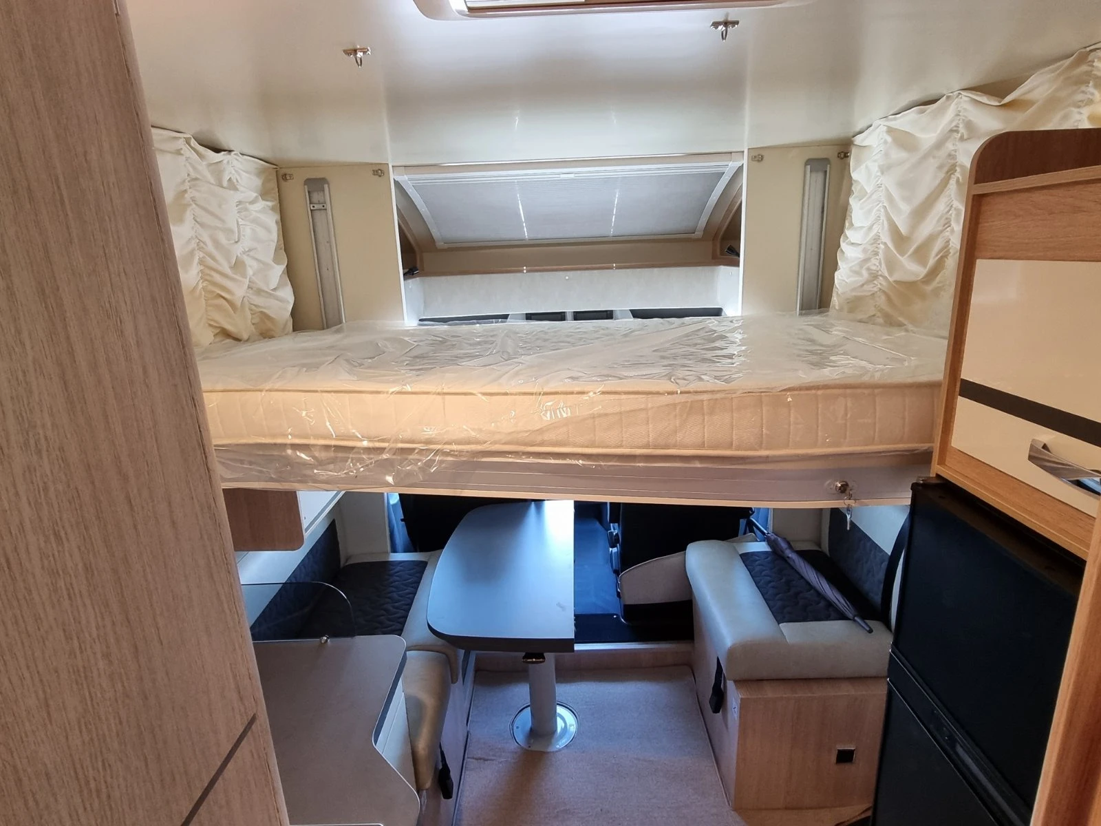 газови бутилки Голям гараж с две големи врати за достъп и отопление Щори и комарници на всички прозорци Цена без ДДС Предлагаме ви гъвкави лизингови схеми и съдействие за регистрация в КАТ. Разполагаме с магазин за аксесоари и части за кемпери и каравани, както и гаранционен и извънгаранционен специализиран сервиз.