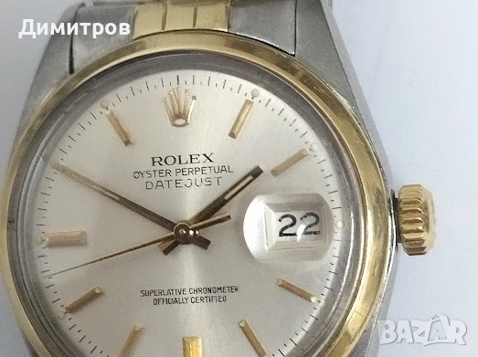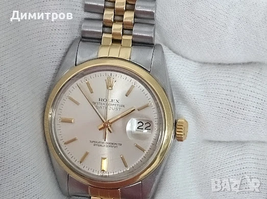 часовник, който влиза вече е категория "колекционерски". И е от доста редкия вариант с гладък безел. Всичко по него е оригинално. Няма заместващи части и компоненти. Само часовник. Тел. О89ЗЗ17О7О Моля да се има предвид, че отскоро ROLEX вдигнаха цените на моделите злато+стомана с 21-23%. заради нарастващата цена на златото. И това ще продължи. Така че покупката може да се разглежда и като инвестиция. Характеристики: Ref. 16003 Материал: Злато 18к+Стомана. Диаметър: 36 мм Корпус: стомана. Циферблат: сребрист. Безел: Злато 18к. Коронка: на винт, злато 18к. Верига: Jubilee, 18к злато+стомана. В перфектно състояние. Механизъм: Автоматичен. Калибър: 3035, in house, (28 800 вибрации в час). Сертифициран хронометър. Заряд: 42 часа. Дата на 3ч. Стъкло: Акрил. Водоустойчивост: 100 метра. Работи идеално. Перфектни външен вид и техническо състояние. Има "косъмчета" от нормално ползване. Няма побитости от удари или дълбоки драскотини. Тестван от специалист.Не са нужни никакви допълнителни ремонти и обслужване. На снимката се виждат показанията на вибрографа. Може да се провери при избран от клиента часовникар. Моля без неадекватни предложения.