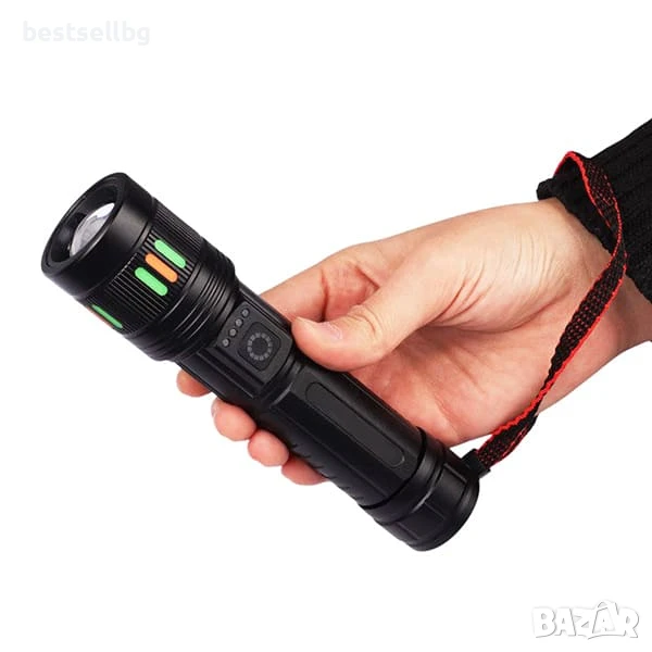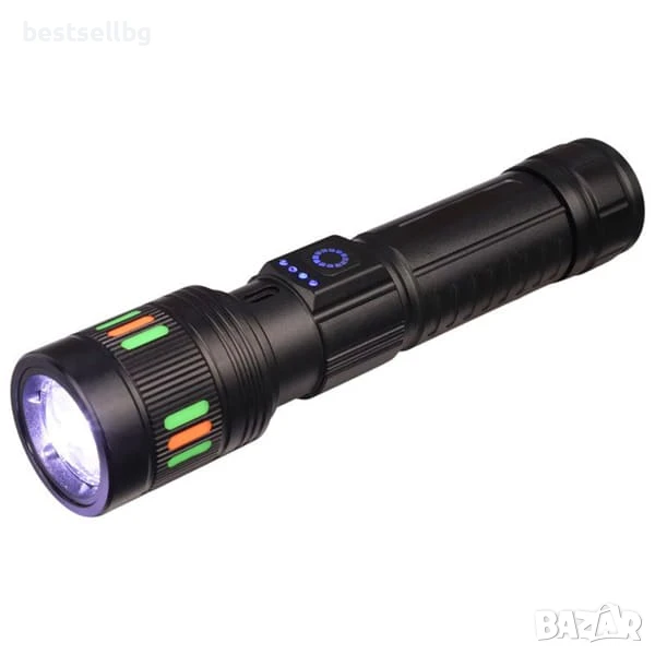 Оборудван с бял лазерен LED модул, този фенер излъчва зашеметяващите 2000 лумена ярка, фокусирана светлина. Неговият лъч достига над 600 метра, като осветява обекти с невероятна прецизност и яснота дори в пълна тъмнина. Независимо дали сте на нощно патрулиране, къмпинг, охрана, лов или в аварийна ситуация, този фенер ще ви даде видимостта, от която се нуждаете.