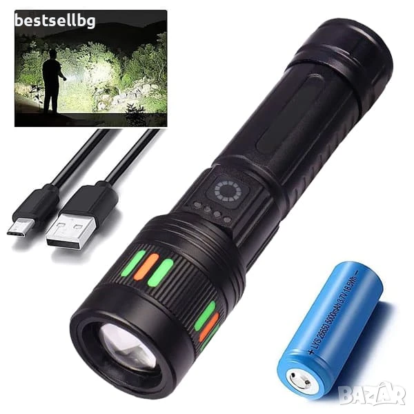 Едно от най-големите предимства на този хибриден фенер е неговата гъвкавост по отношение на захранването. Можете да го използвате с акумулаторни батерии тип 18650 или 26650, осигурявайки дълги часове работа. Включен е и специален адаптер за 3 броя батерии ААА/LR03, което ви дава възможност да използвате широкодостъпни батерии при нужда. Зареждането е лесно и удобно чрез Type-C кабел, включен в комплекта.