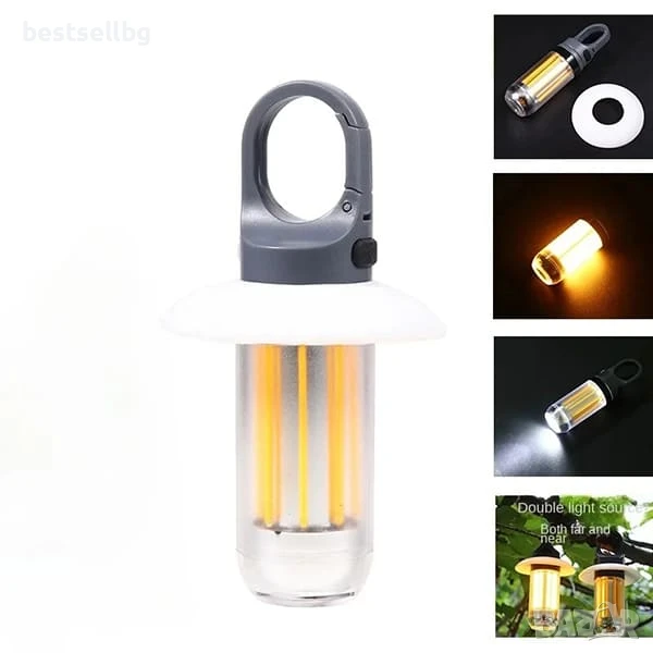 Тази компактна и мощна къмпинг лампа е вашият идеален спътник за всяко приключение на открито! Независимо дали сте на къмпинг, туризъм, риболов или просто се нуждаете от надежден източник на светлина, този иновативен уред 2 в 1 предлага гъвкавост и издръжливост, събрани в едно леко и удобно устройство.
