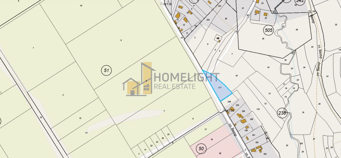 Парцелът не е в регулация, но има възможност за смяна на предназначението за жилищно строителство. Подходящ е както за еднофамилна къща, така и за изграждане на малък жилищен комплекс.