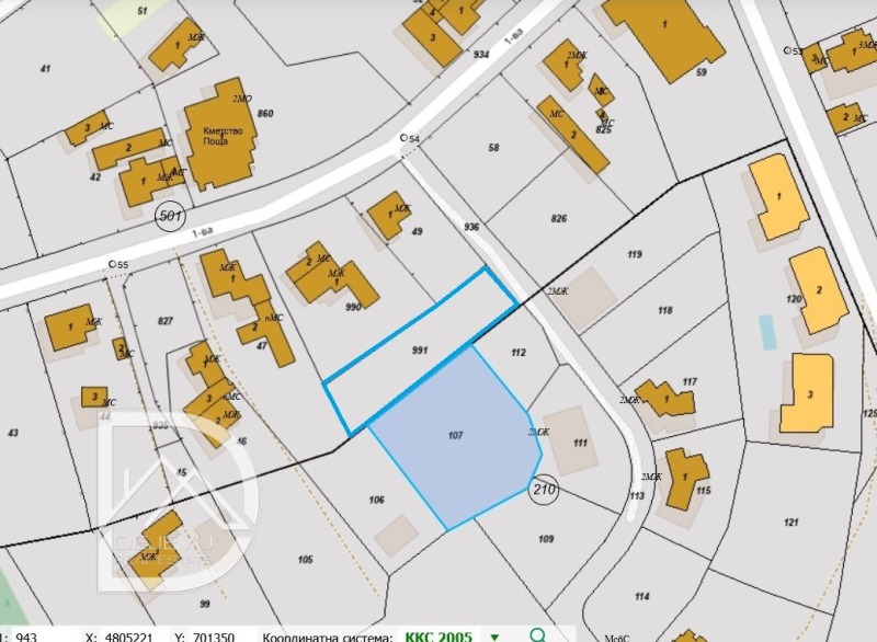 Екслузивно. Два парцела в централната част на селото, срещу кметството. Единият парцел е с ПУП. Продават се само заедно. Денивелация. Морска панорама. Отклонения за ток и вода.