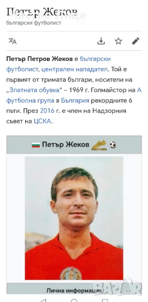 Медальонът е от средата на 1970те г, защото на обратната му страна има снимка на легендарния голмайстор и носител на Златната обувка Петър Жеков. Снимката е от неговия златен период в ЦСКА, - 1968-1975 г., когато става голмайстор.
