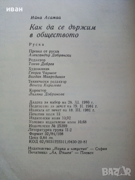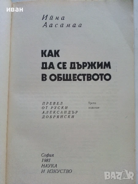 Как да се държим в обществото - Ийна Аасамаа - 1981г. → Обява 51205800