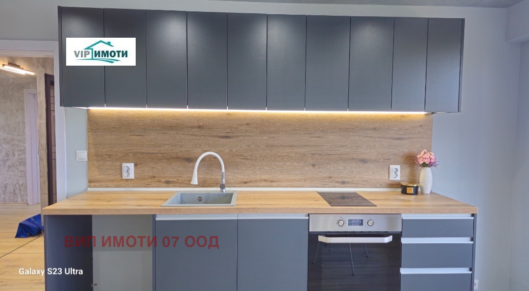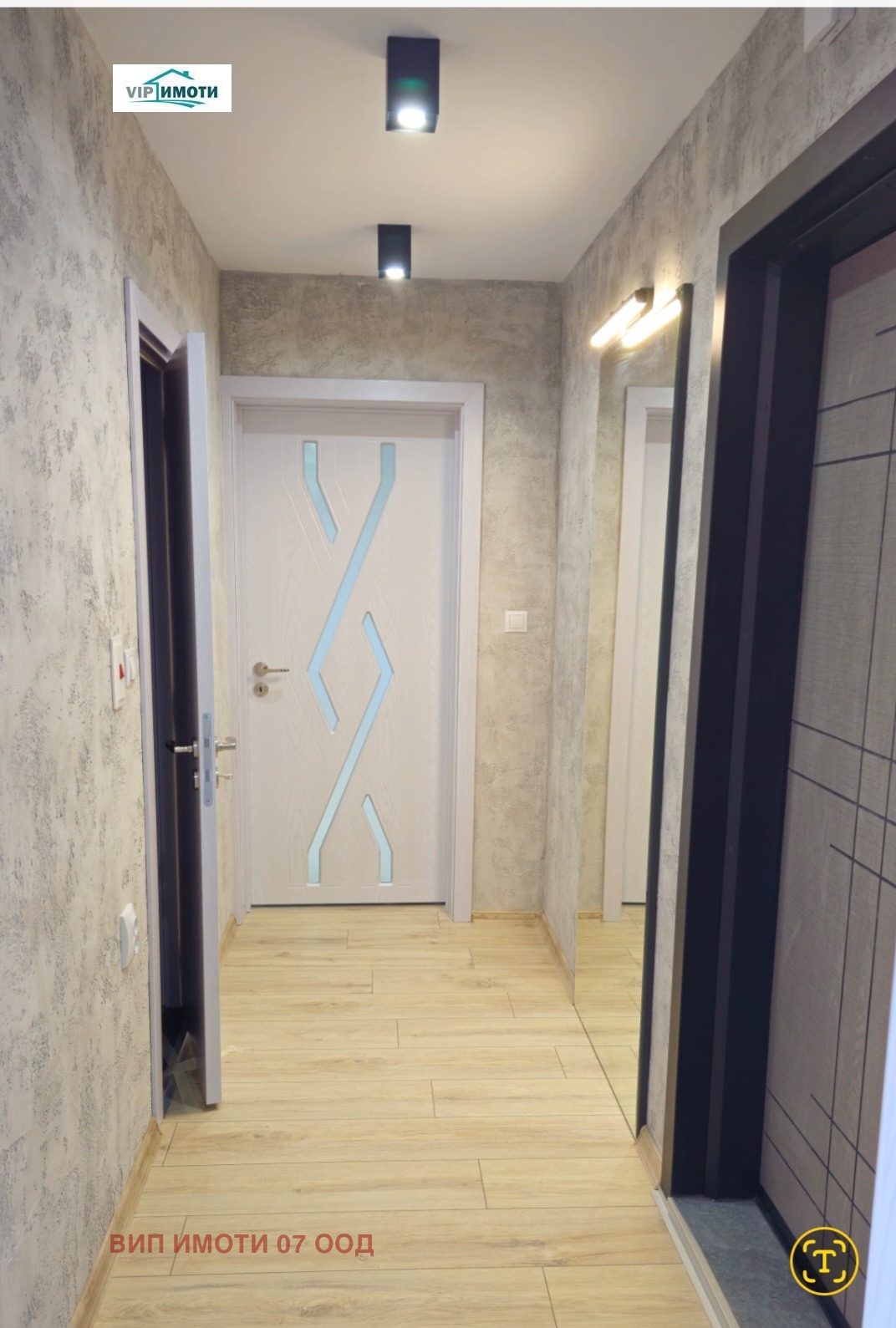 Предлагаме южен, преустроен в тристаен апартамент след основен ремонт. Сменени са дограмите с PVC, направени са венециански мазилки, стените са с вата, гипсокартон и мазилки, подовите настилки са високо качествен ламинат, ключове и контакти на 'Schnider' , душ батерията е на марката 'Grohe'. Спалнята е обзаведена с мебели по поръчка, кухненското също е по поръчка, разполага с най важните ел.уреди/ съдомиялна, абсорбатор, котлони, фурна / .Блокът е одобрен за саниране!